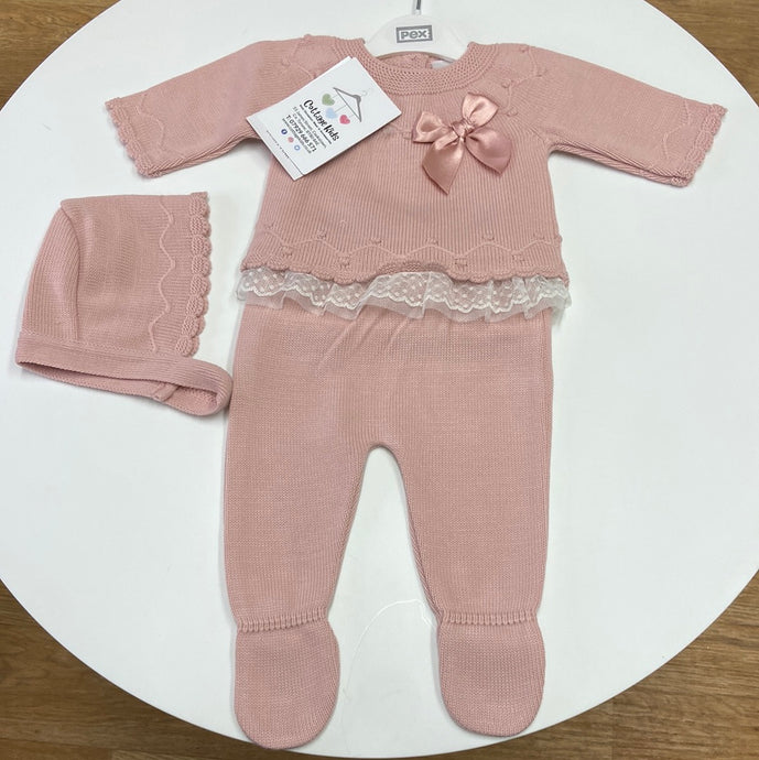 PEX baby girl dusky pink 3 piece knitted set - Bridget