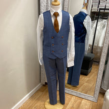 Marc Darcy Boys suit with double breasted waist coat. Sky blue checked fabric.