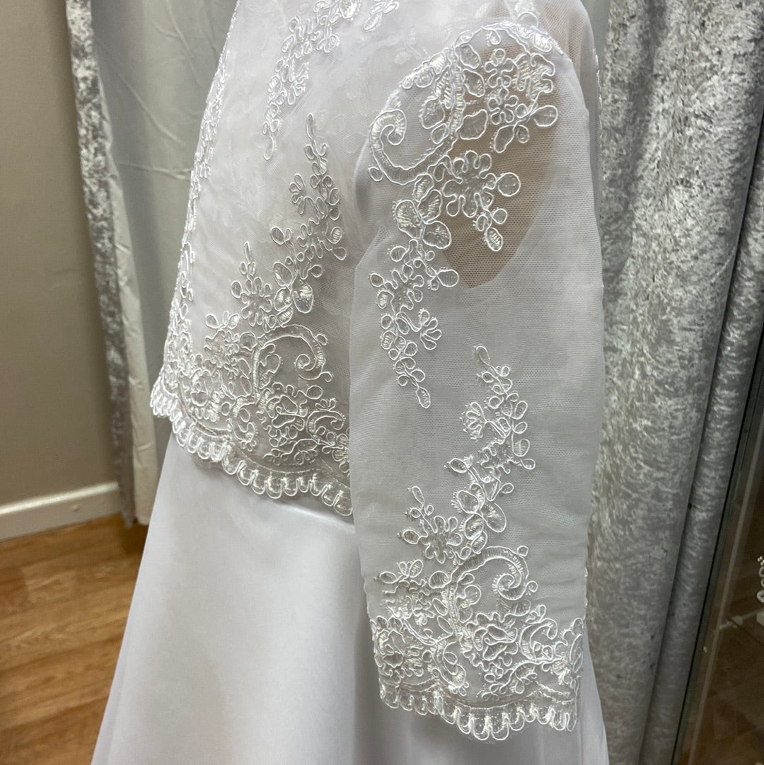 Long sleeve lace bolero with beautiful button detailing on the back. Stunning piece to enhance any Holy Communion Dress.