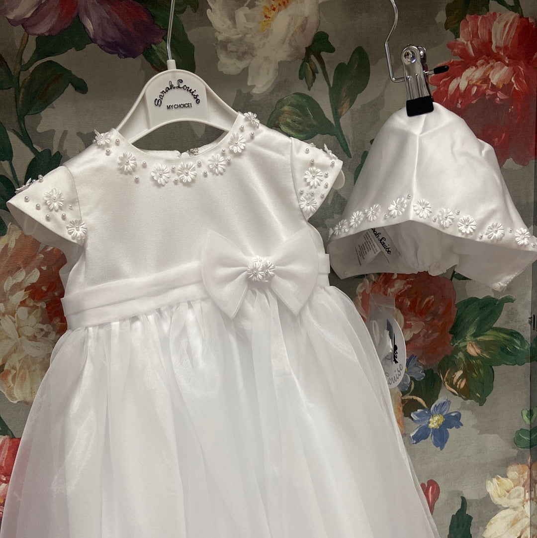 Sarah Louise baby girl christening gown white with bonnet- Jessica 001055.